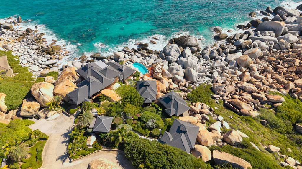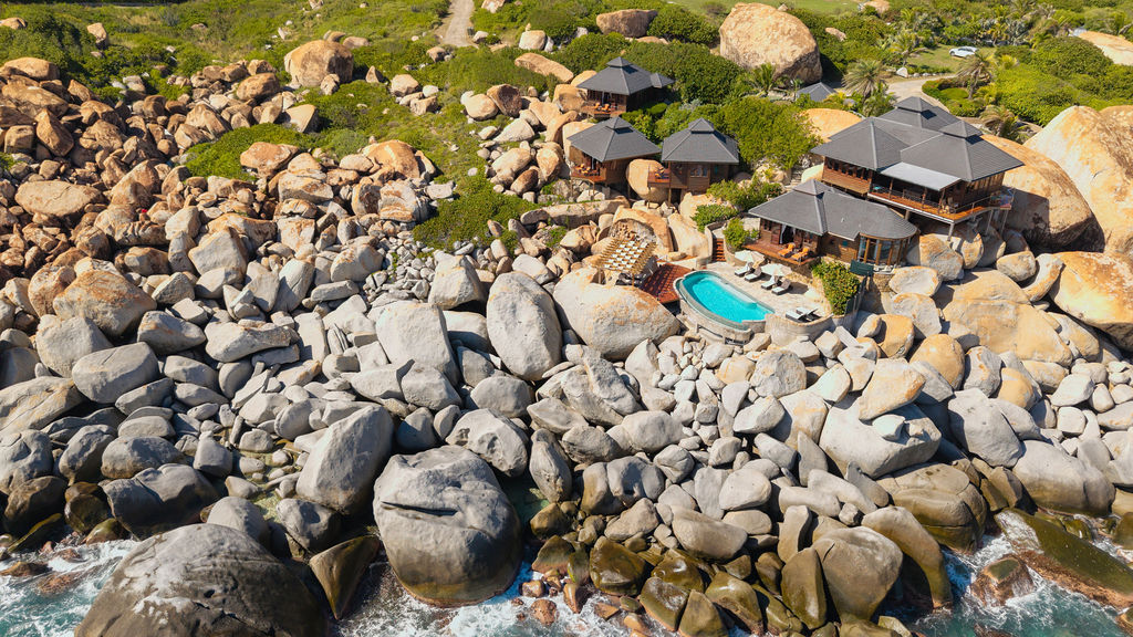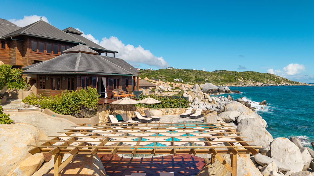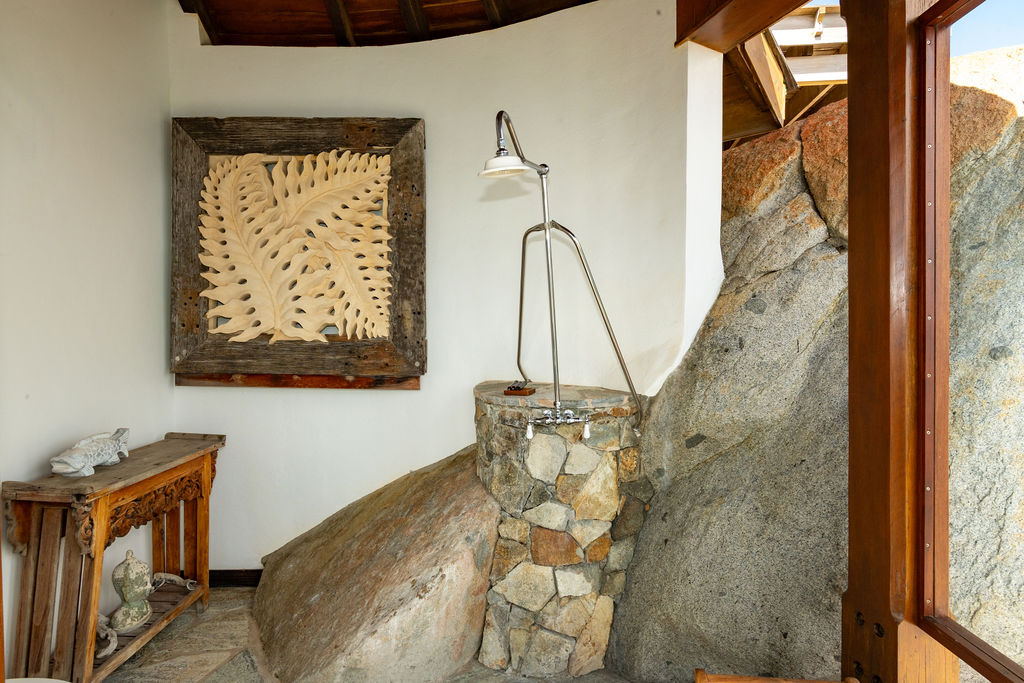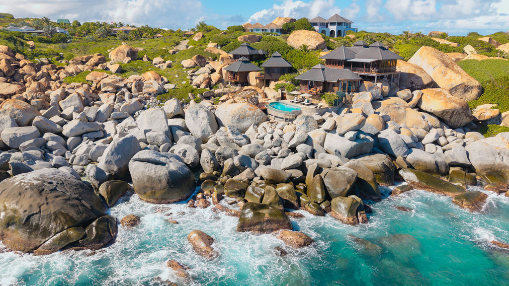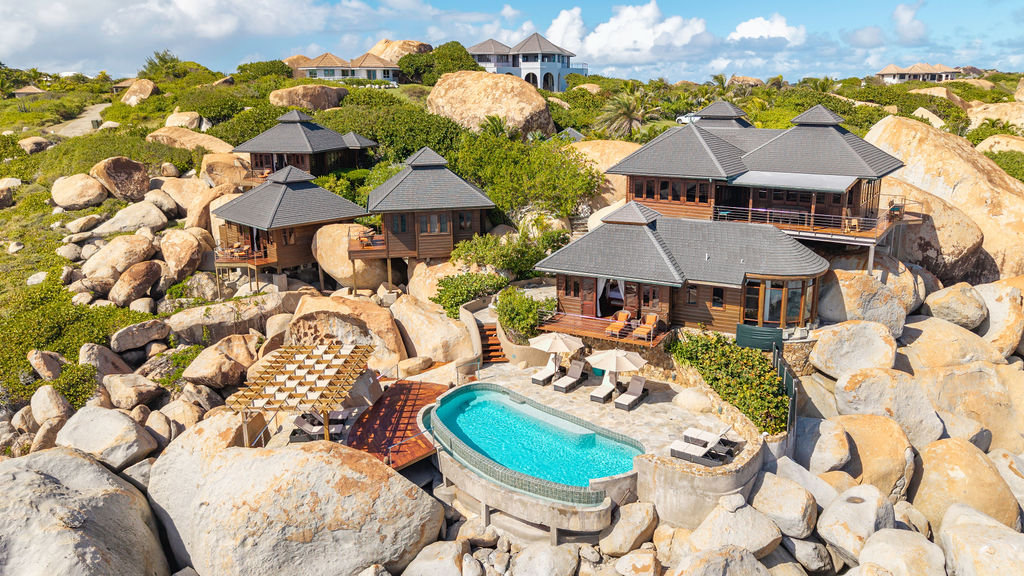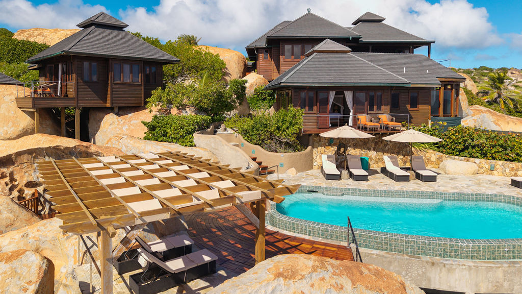 Perched among the majestic boulders of Virgin Gorda’s Atlantic shoreline, Villa Batu (“rock” in Indonesian) offers a luxurious Caribbean retreat. With tropical breezes, breathtaking views, and five-star amenities, this villa ensures an unparalleled vacation experience. Just a short walk away lies The Baths, a world-renowned geological formation of granite boulders and pristine beaches, which inspired Batu’s awe-inspiring design.