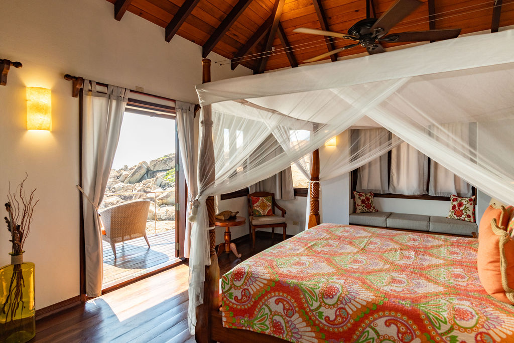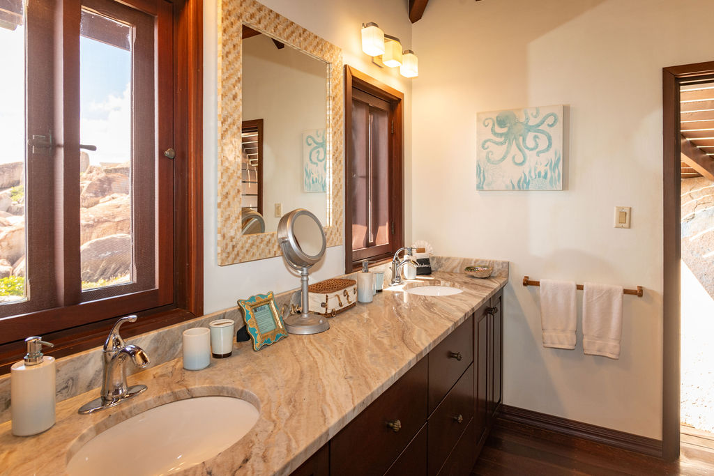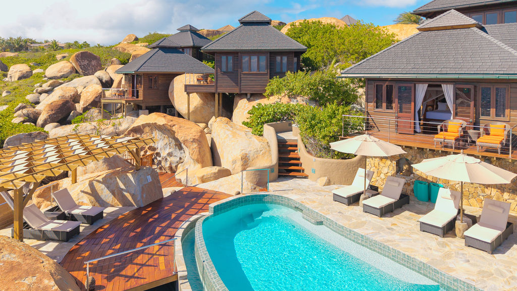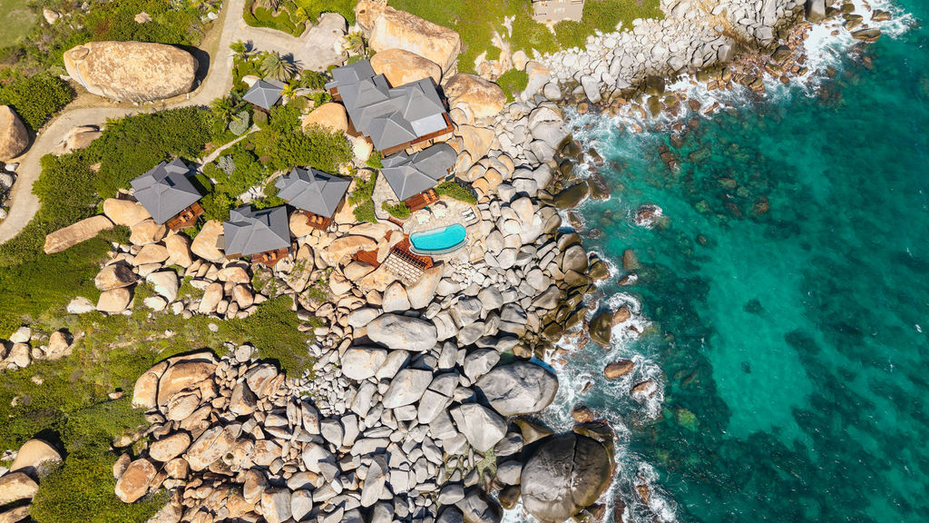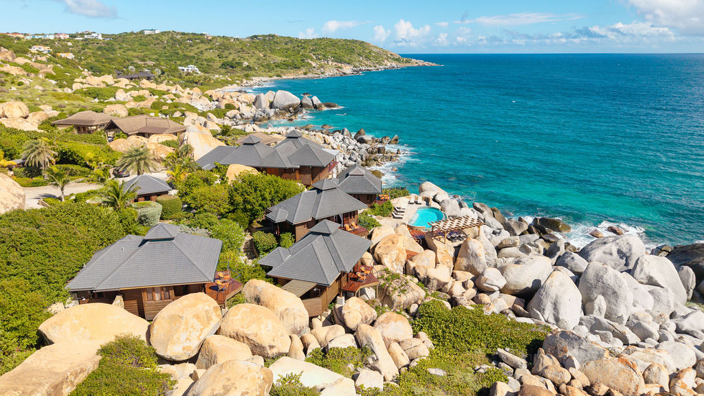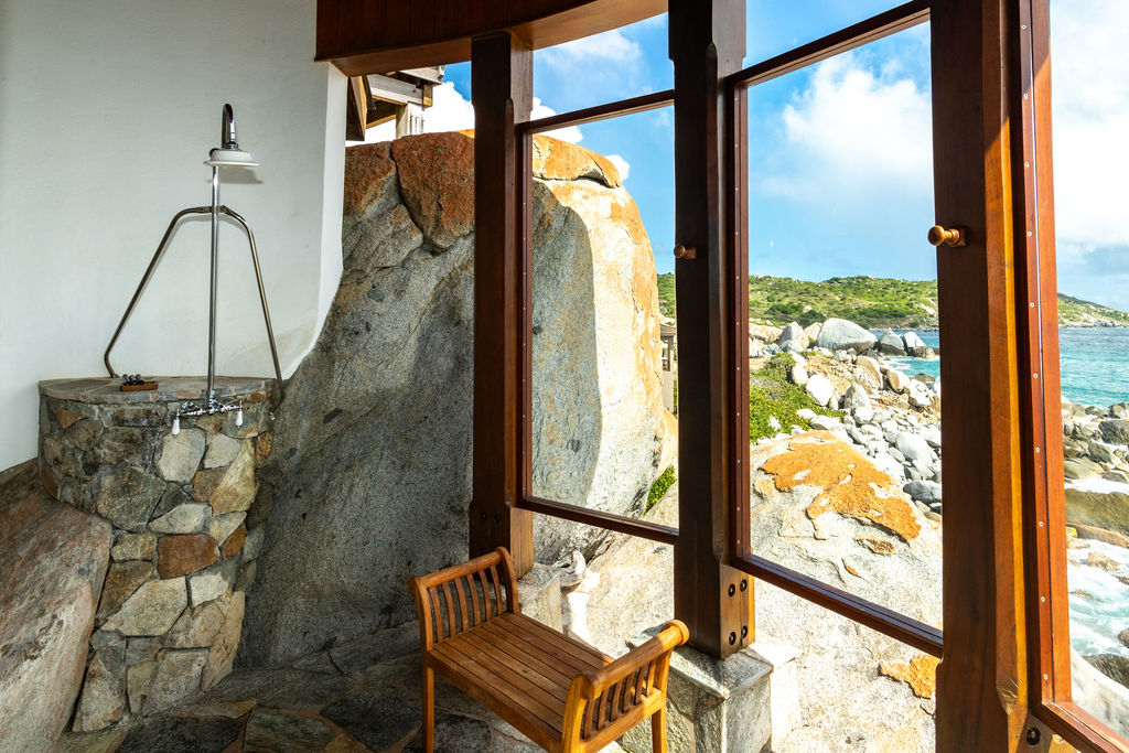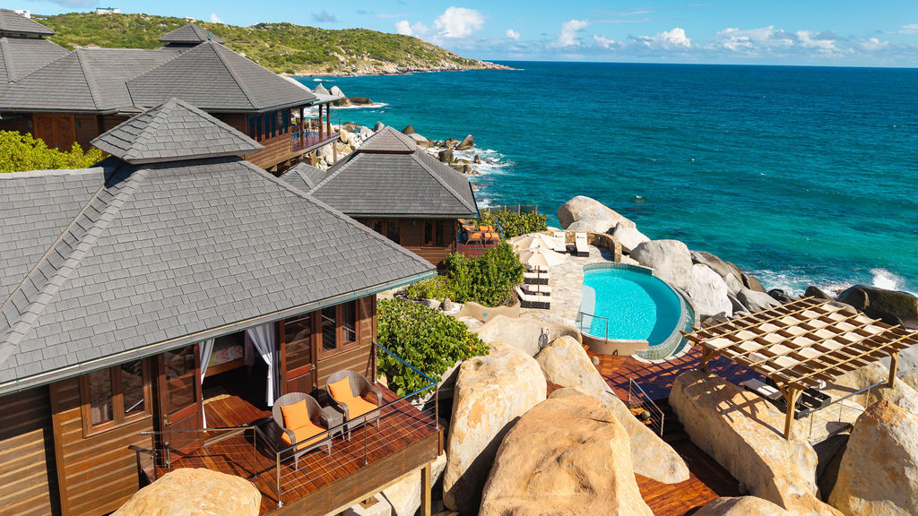 Perched among the majestic boulders of Virgin Gorda’s Atlantic shoreline, Villa Batu (“rock” in Indonesian) offers a luxurious Caribbean retreat. With tropical breezes, breathtaking views, and five-star amenities, this villa ensures an unparalleled vacation experience. Just a short walk away lies The Baths, a world-renowned geological formation of granite boulders and pristine beaches, which inspired Batu’s awe-inspiring design.