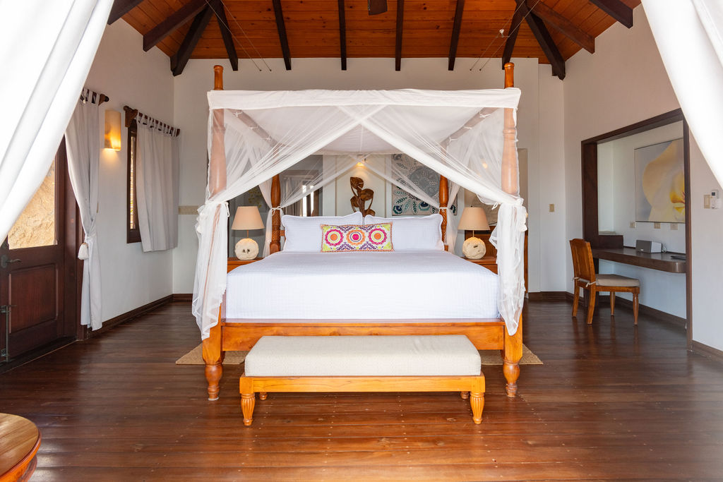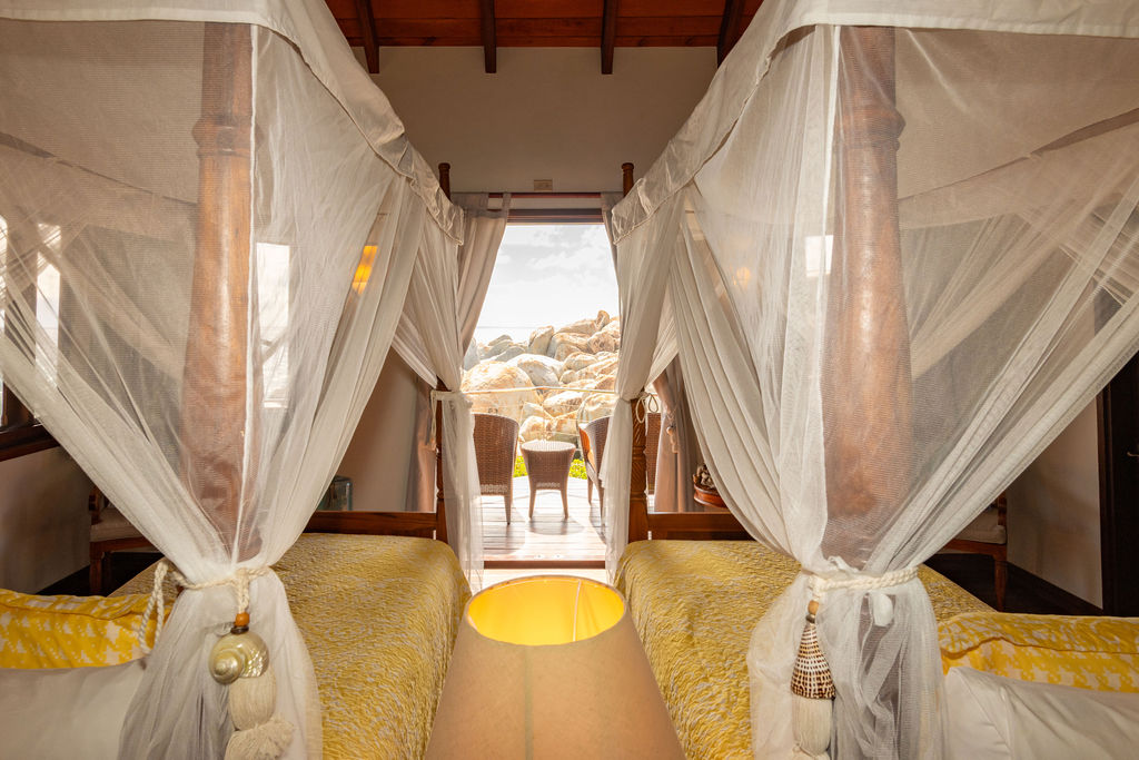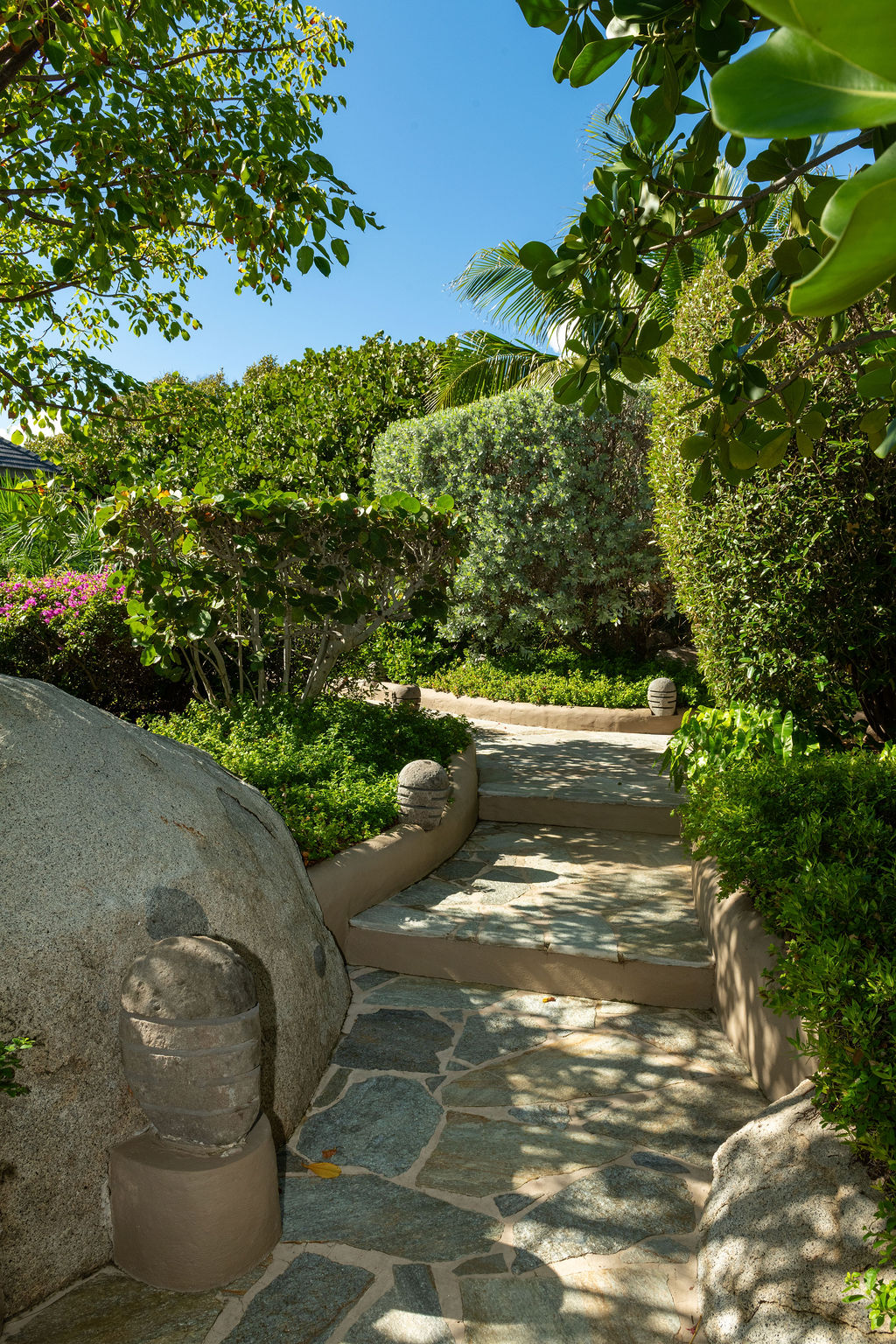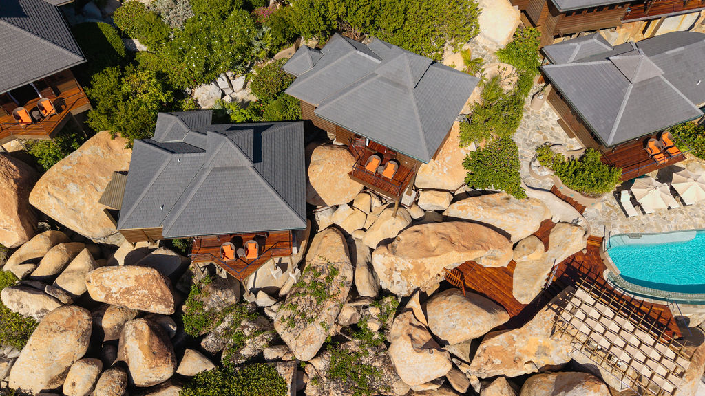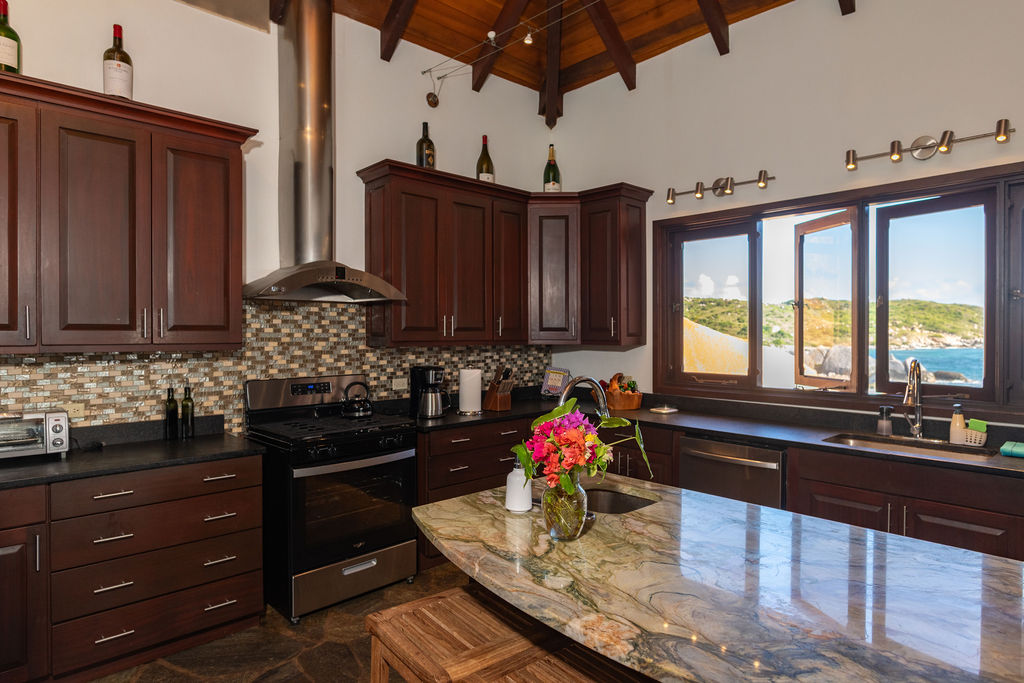 Perched among the majestic boulders of Virgin Gorda’s Atlantic shoreline, Villa Batu (“rock” in Indonesian) offers a luxurious Caribbean retreat. With tropical breezes, breathtaking views, and five-star amenities, this villa ensures an unparalleled vacation experience. Just a short walk away lies The Baths, a world-renowned geological formation of granite boulders and pristine beaches, which inspired Batu’s awe-inspiring design.